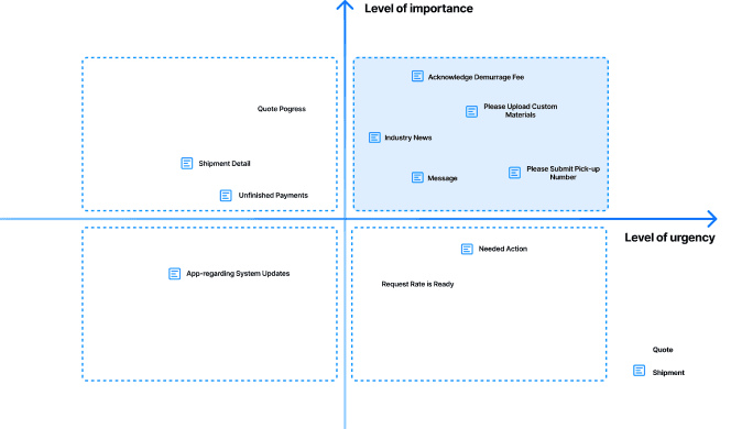 Notification helps to deliver the most essential information, category tab as well as Action tag help track different kinds of shipment progresses.