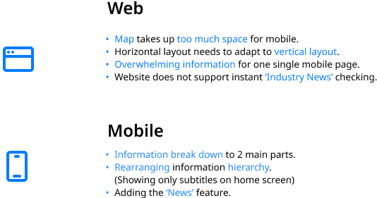 Due to mobile’s vertical & narrow shape, information might turns out too overwhelming when transferring web page to mobile app. Building a hierarchy and breaking down pages would be fairly efficient when displaying different level of info.