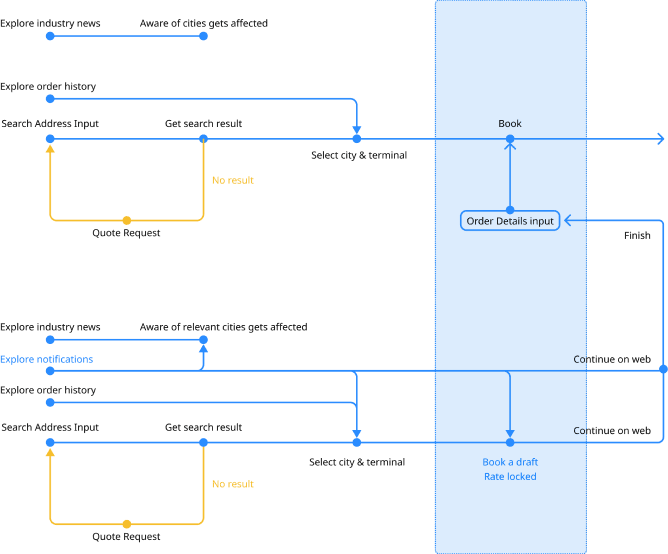 Our design scope was to focus on the DrayEasy Mobile App rate search process.