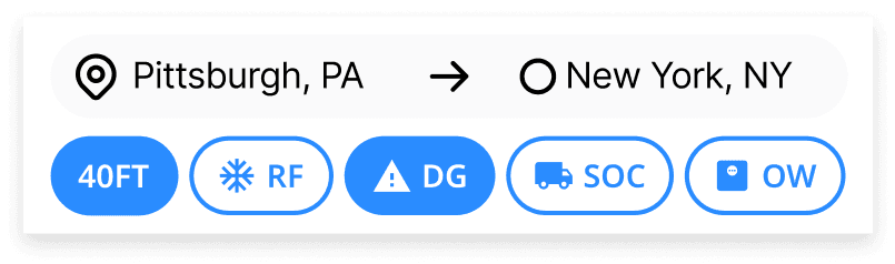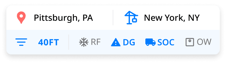Smart card filters ease the visualization of possible route options with specified cargo criteria.