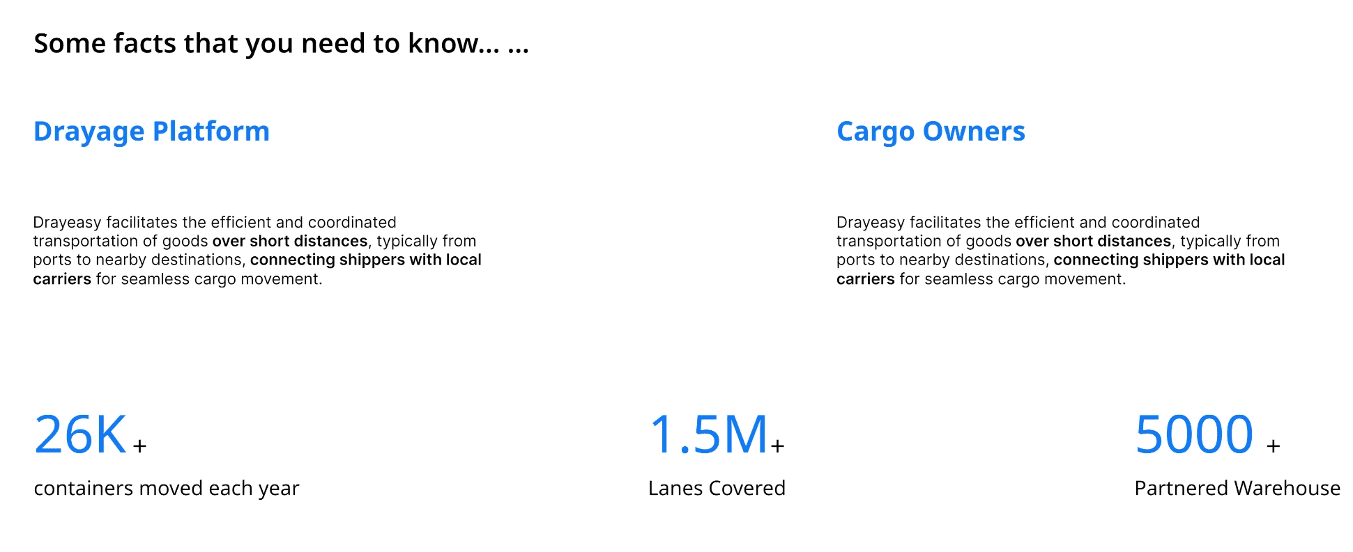 Drayeasy facilitates the efficient and coordinated transportation of goods over short distances, typically from ports to nearby destinations, connecting shippers with local carriers for seamless cargo movement.