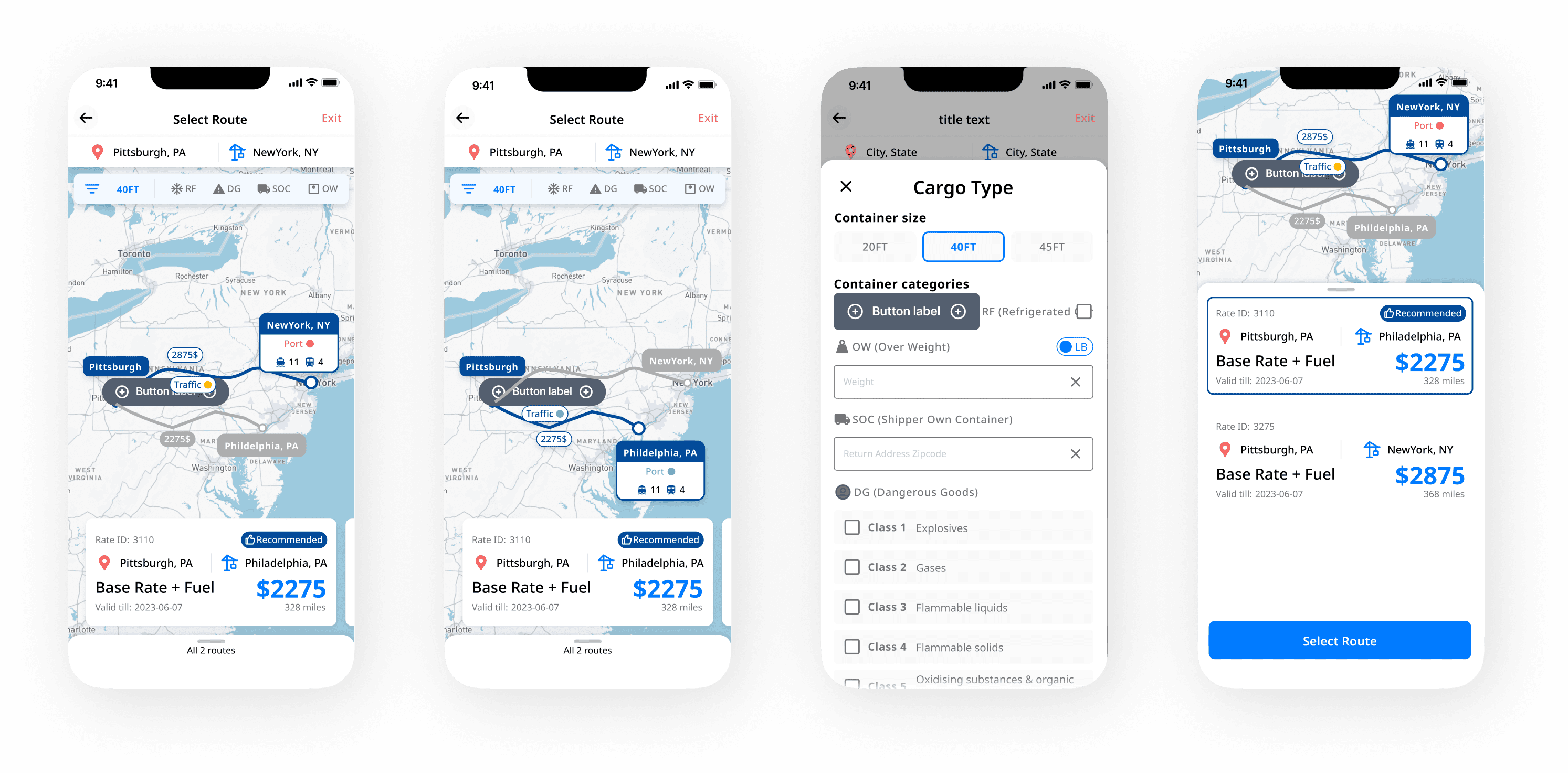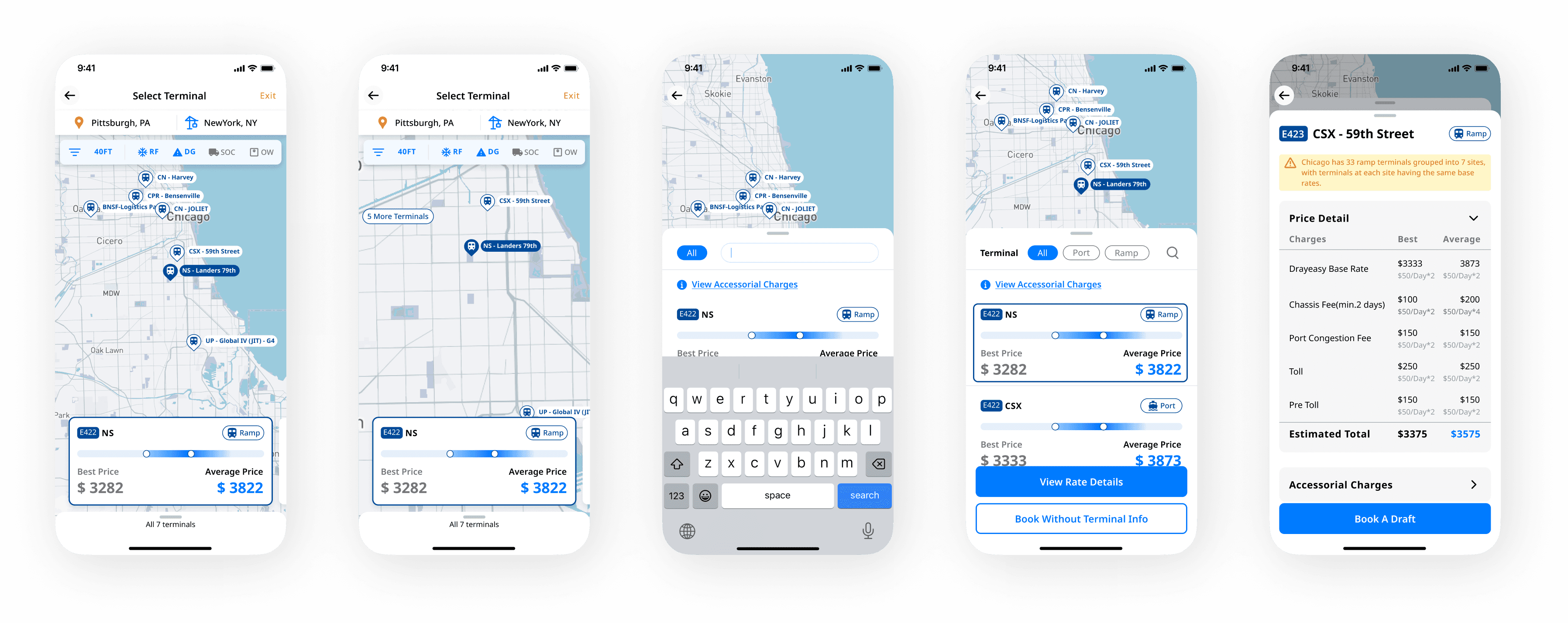• Responsive display of different ports and prices