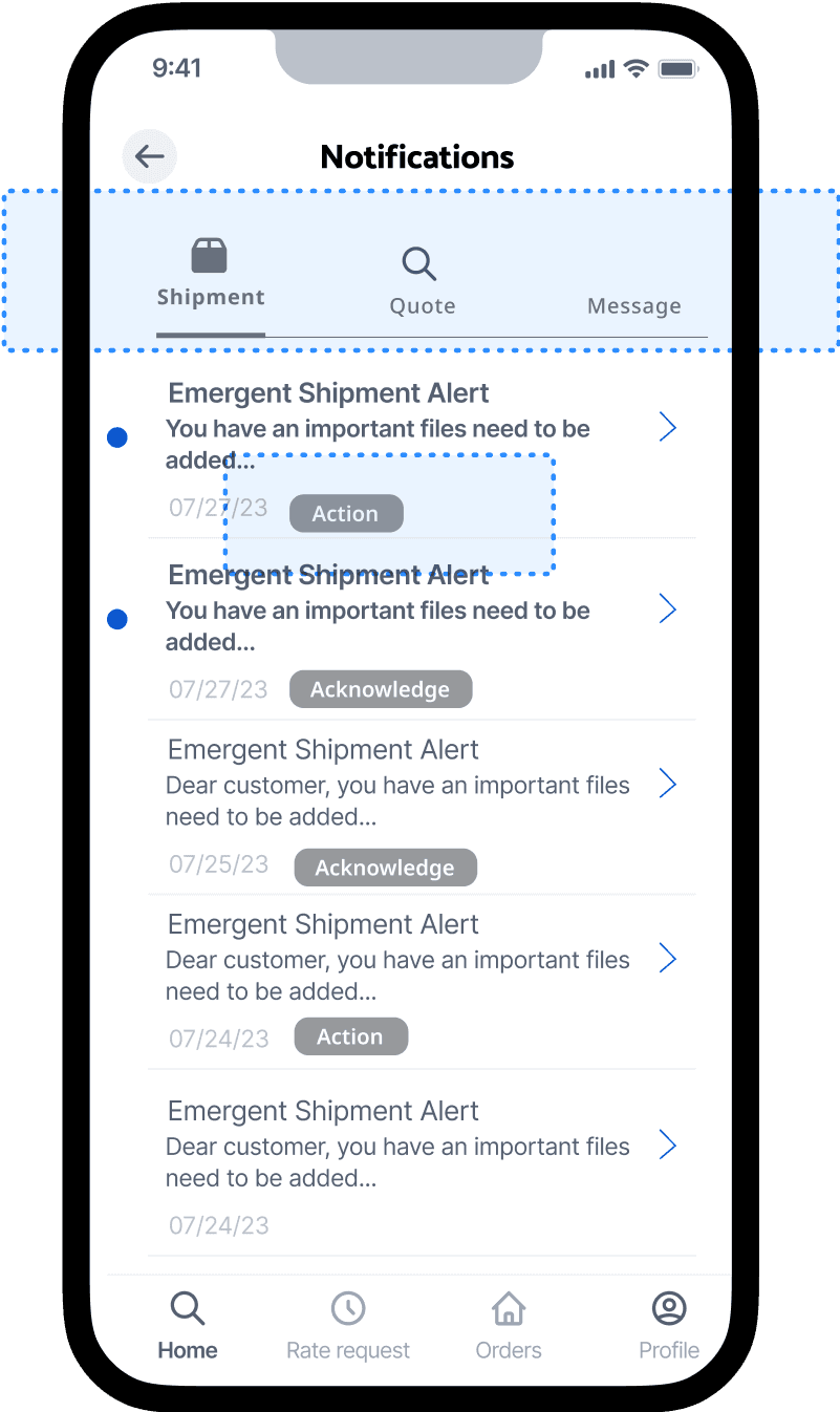 'Action' and Acknowledge' tag imply differenttypes of notification