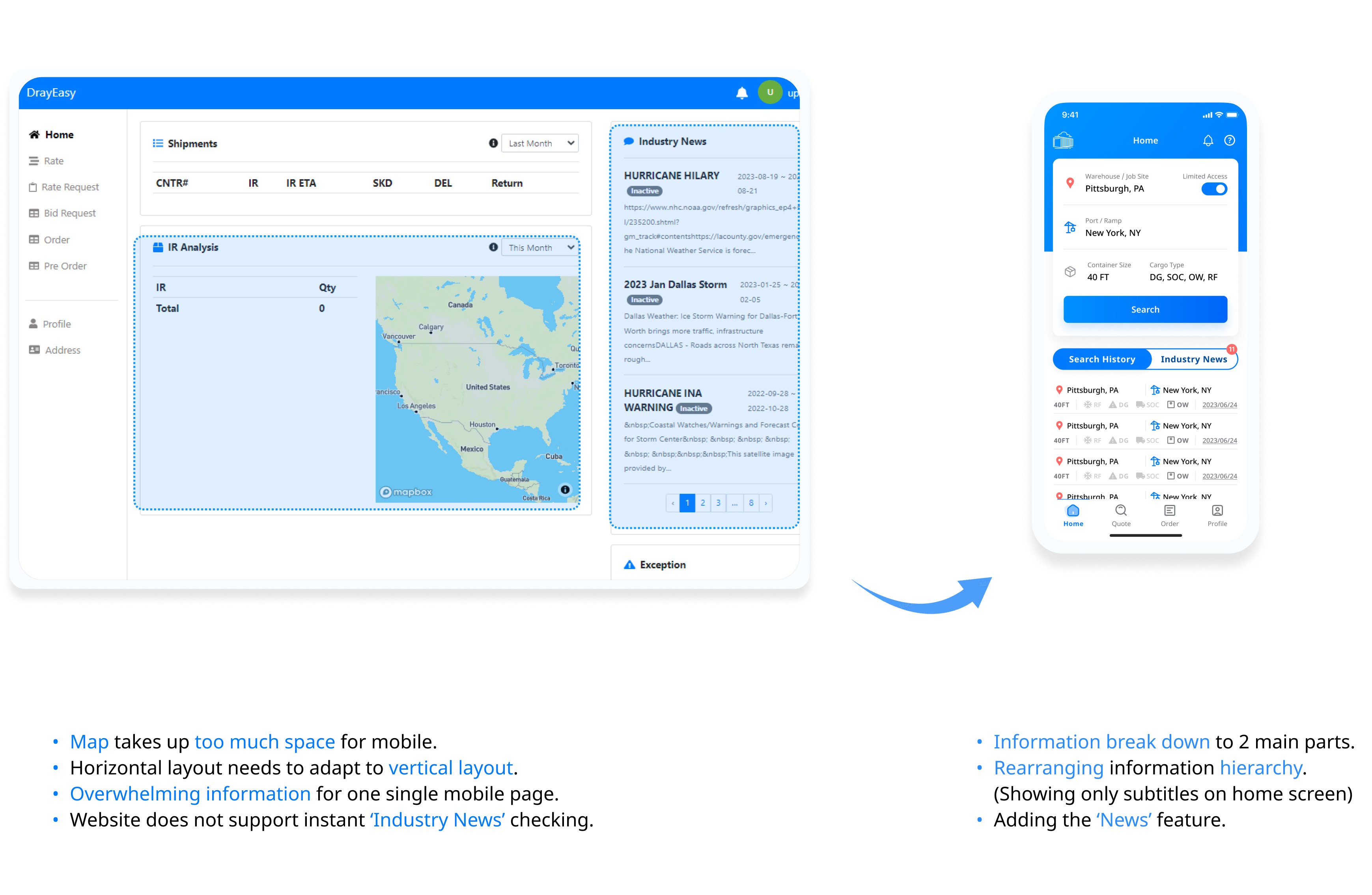 Due to mobile’s vertical & narrow shape, information might turns out too overwhelming when transferring web page to mobile app. Building a hierarchy and breaking down pages would be fairly efficient when displaying different level of info.