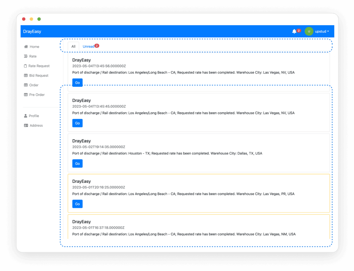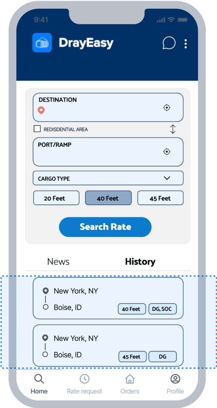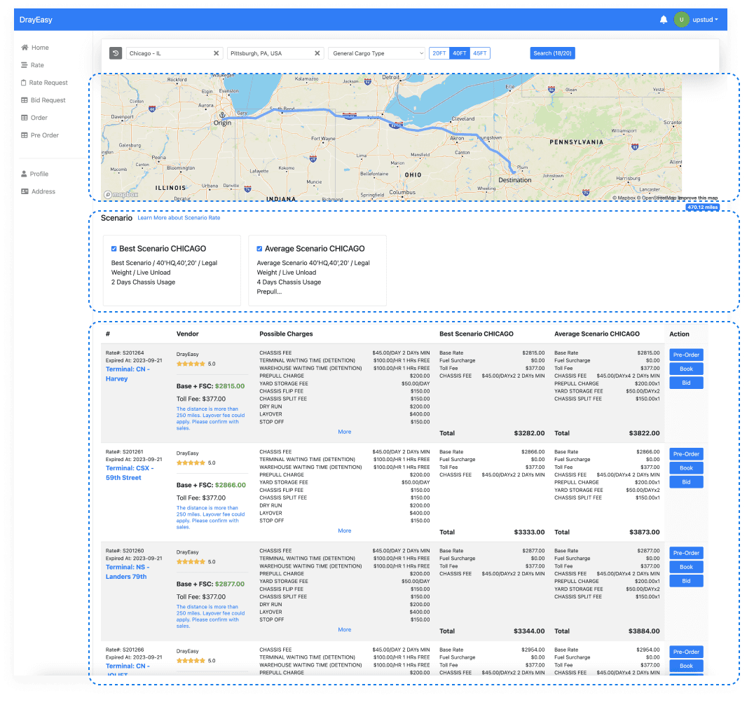 Although there is only less than 5% percent of the rates that aren’t covered by DrayEasy database, a centralized page for users to check past rate quote requests can still be helpful.